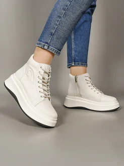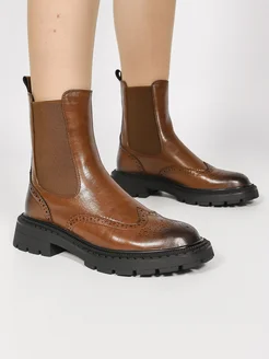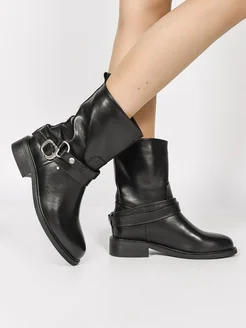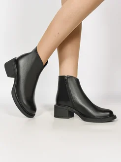 Ботильоны кожаные на устойчивом каблуке демисезонные