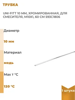 Трубка 10 мм, хромированная, для смесителя, М10х1, 60, 1 шт