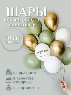 Шары воздушные белый-золото-олива 20 шт. 25 см