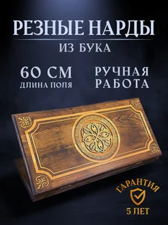 Нарды резные Тёмный Узор 1 50, средние из бука 50х50