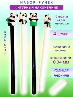 Ручка шариковая фигурная синяя Пандочка набор 4 штуки