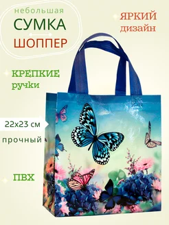 Сумка шоппер крепкий пакет для женский в офис Бабочки