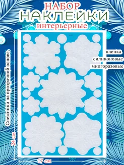 Наклейки Снежинки на окно интерьерные силикон многоразовые