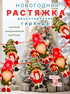 Гирлянда бумажная Гномики растяжка новогодняя для комнаты