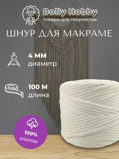 Шнур хлопковый 4мм, для макраме и рукоделия 100м