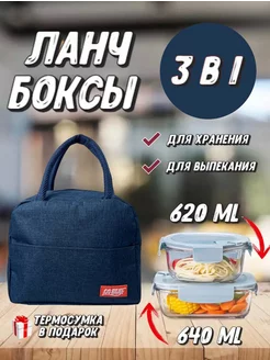 Ланч-бокс с термосумкой стеклянный контейнер для еды