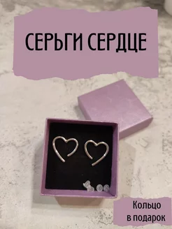 Серьги сердце гвоздики большие, бижутерия для девочек