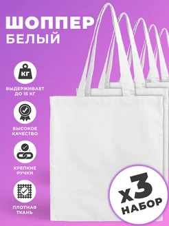 Сумка-шоппер без рисунка белый, 3 шт