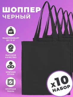 Сумка-шоппер без рисунка черный, 10 шт
