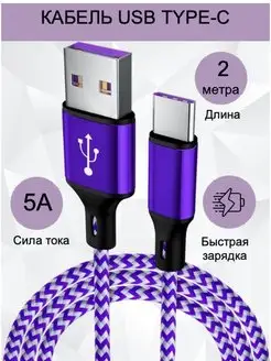 Кабель Type-C 2м Быстрая зарядка Тайп Си