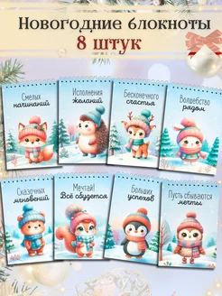 Набор блокнотов А6 на пружине подарочный новогодний 8 штук