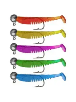 Приманка для спиннинга виброхвост с джиг-головкой, 5 шт
