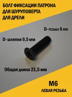Болт фиксации патрона для дрели, винт M6, левая резьба