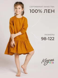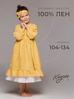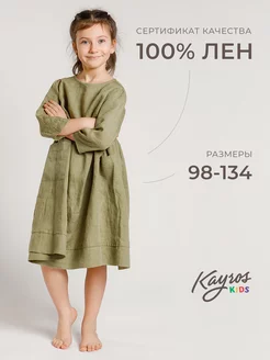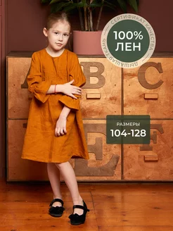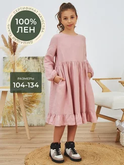 Льняное платье для девочки нарядное летнее 100% лен