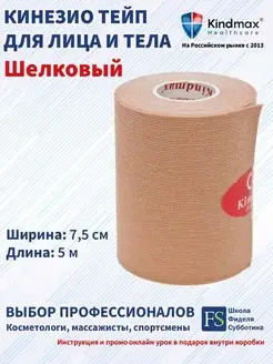 Кинезио тейп для лица и тела шелковый 7,5 см