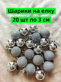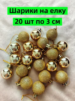 Ёлочные игрушки 20 шт по 3 см новогодние шары маленькие