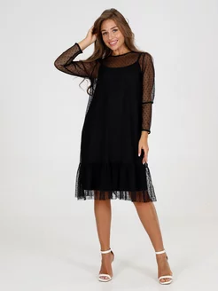 Платье двойное черное из сетки