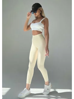 Леггинсы спортивные лосины в рубчик с высокой талией