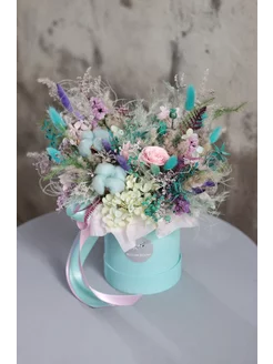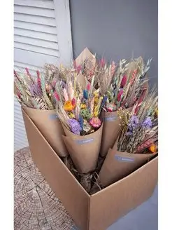 Букет из сухоцветов со статицей и пшеницей, 38 см