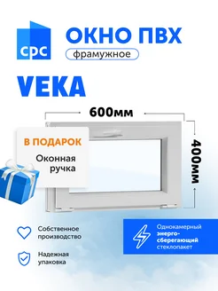 Окно пластиковое ПВХ 600*400 мм (ШхВ) фрамуга откидное
