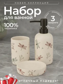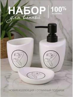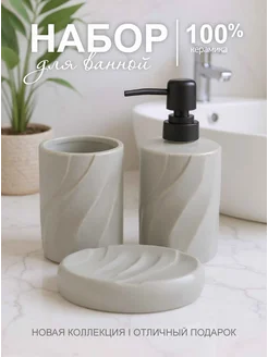 Набор для ванной комнаты с дозатором и мыльницей керамика