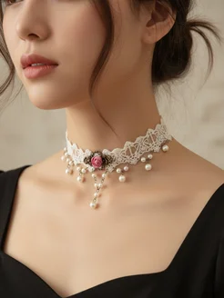 Чокер на шею белый ожерелье с розой