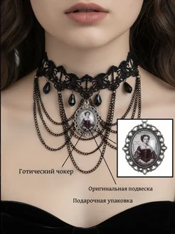 Чокер на шею черный стильный с цепями и готическим кулоном