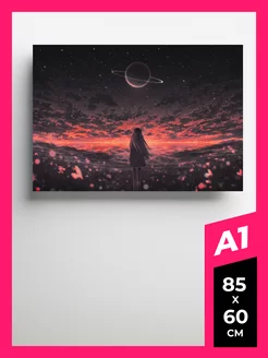 Интерьерный постер аниме плакат Девушка Anime звездное неба