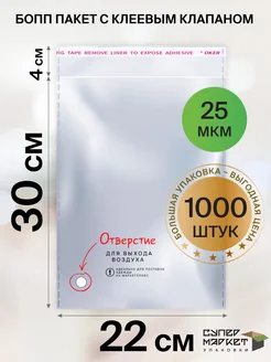 Упаковочные БОПП пакеты с клеевым клапаном 22х30