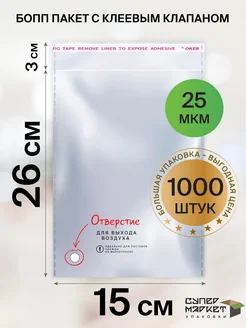 Упаковочные БОПП пакеты с клеевым клапаном 15х26