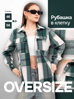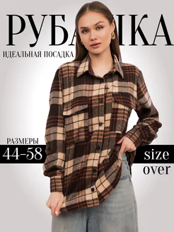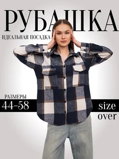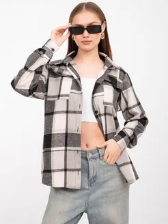 В клетку рубашка оверсайз теплая