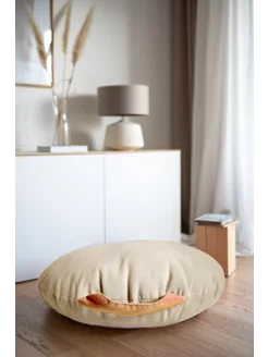 Пуфик для пола 60см, круглый, бежевый, на молнии