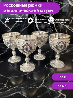 Рюмки для водки металлические стопки на ножке 4шт серебро
