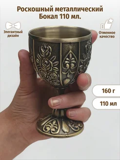 Бокал для вина на ножке, фужер металлический винтажный 1 шт