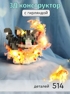 3д конструктор из миниблоков Кошечка с цветами