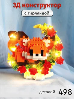 3д конструктор из миниблоков Лисичка с цветами