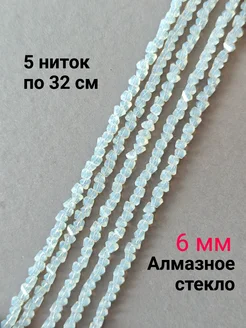 Бусины крупные алмазное стекло 5 ниток 6 мм лунный