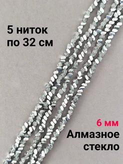 Бусины крупные алмазное стекло 5 ниток 6 мм серебристые