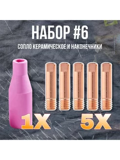 Наконечник 0,8 - 5шт, сопло керам. для полуавтомата - 1шт