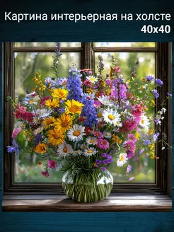 Картина интерьерная на холсте "Полевые цветы" 40x40см