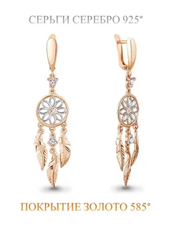 Серьги "Ловец снов" 100 % серебро 925 позолота фианит