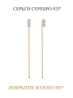 Серьги продевки 100 % серебро 925 позолота с фианитами