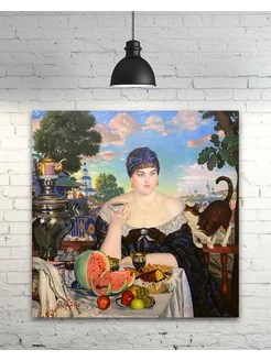 "Купчиха за чаем", Кустодиев (без подрамника, 40х40 см)