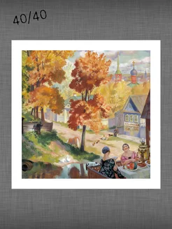 "Осень в провинции", Кустодиев (холст без подрамника, 40х40)