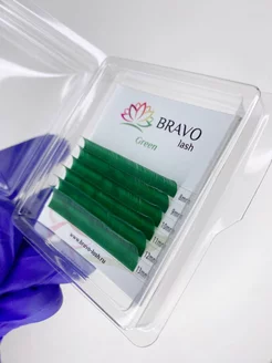 Ресницы D 0.07 8-13 мм зеленые - 6 линий, микc