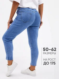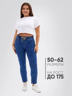 Джинсы на резинке большие размеры с высокой посадкой мом