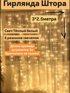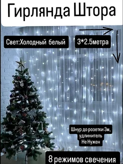 Гирлянда штора 3х2.5м Холодный Тёплый