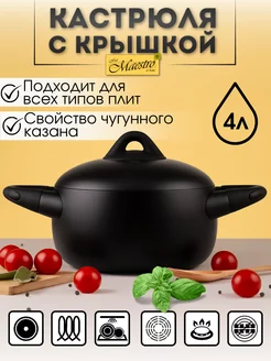 Кастрюля с крышкой 4 л антипригарная Казан индукция