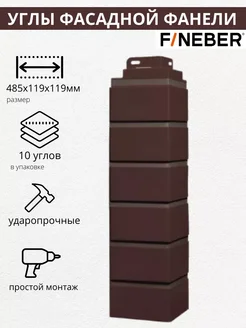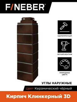 Угол наружный кирпич клинкерный 3D, 10 шт коричнево-чёрный
