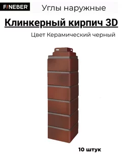 Угол наружный Кирпич KLINKER 3D, керамический чёрный, 10 шт